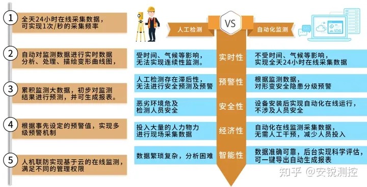 实时监测:可根据不同需求设置采集频率,1次/秒的高频采集保证7*24小时不间断在线自动化监测;无需人员多次进入施工现场。