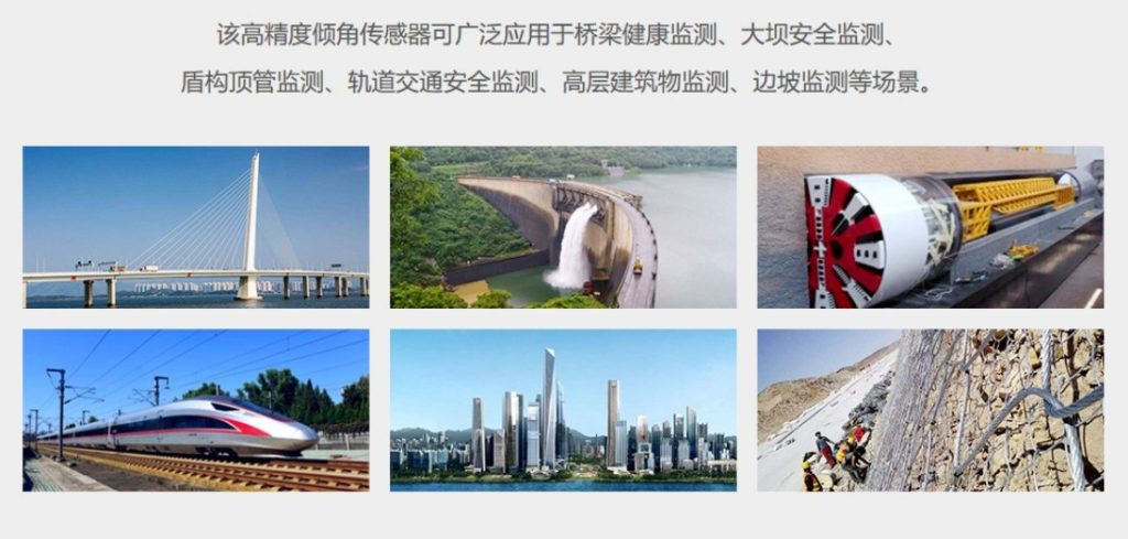▶ 有线倾角传感器可广泛应用于房屋危房、桥梁、大坝、盾构顶管、轨道交通、高层建筑、边坡监测等场景。