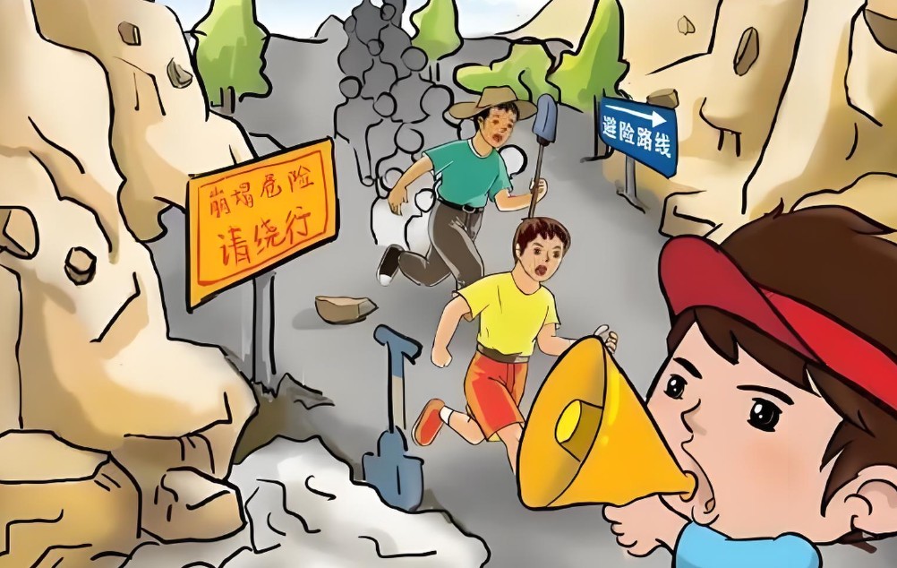 ③声响异常:有岩石开裂或被剪切挤压的音响,这很可能是滑坡的迹象。或山谷内传来似火车轰鸣或闷雷般的声音,可能是泥石流发生时,大量泥沙石块在沟谷内滚动撞击的声音。
