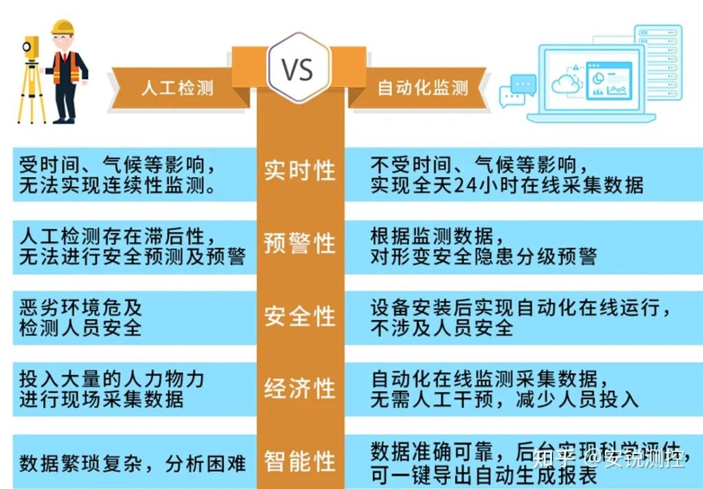 实时监测:可根据不同需求设置采集频率,1次/秒的高频采集保证7*24小时不间断在线自动化监测;无需人员多次进入施工现场。
