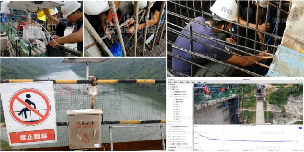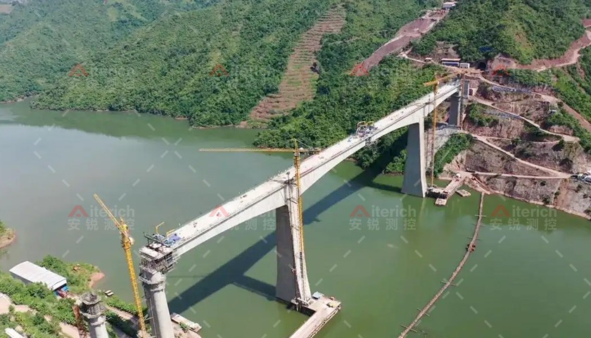 为确保大桥的合拢精度和和工程质量,桥梁施工过程中全程采用深圳安锐科技的结构安全自动化监测系统对桥梁的关键数据进行全天24小时在线监测。该监控系统集成了物联网、无线数据传输、新型传感器、云计算等新技术。可对每一个节段的标高、钢筋应力、混凝土的应变和温度、主墩沉降、水位等数据进行实时在线监测,并通过云服务器对各截面的数据进行分析和预测,根据监测数据对施工参数进行调整,确保每一个节段的精确浇筑,使得梁面整体线形平顺,合龙精度达到毫米级的控制目标。
