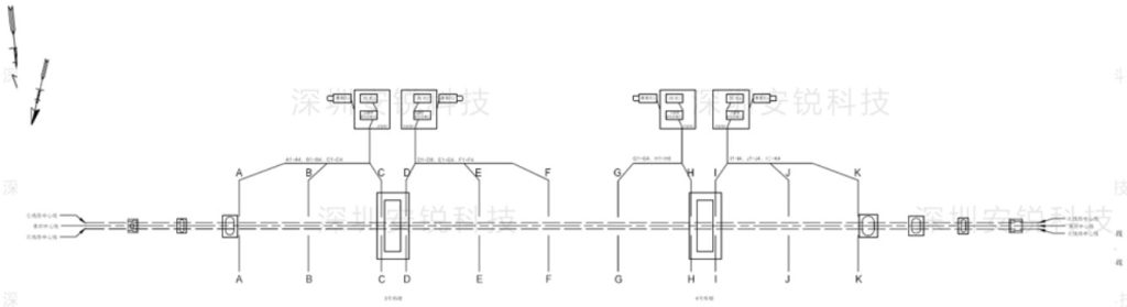 如上图所示:桥梁共设有ABCDEFGHIJK共11个监测截面。在中跨较大的DH两个截面分别布设8个监测点,其它的截面分布布设4个监测点。截面布点如下图所示: