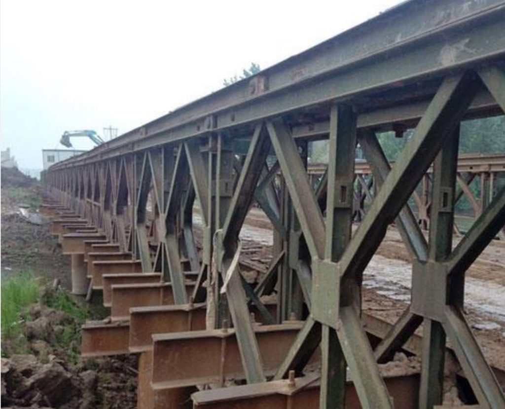 常规的保护方案是在电力管廊两侧安装贝雷架组成的钢便桥。从管廊底部穿过工字钢架在钢便桥的梁上,托起电力管廊。当贝雷架受力时,将产生一定的挠度。在安全范围内的正常挠度变形对钢便桥是安全的。但由片石砌筑的电力管廊来说,此挠度可能带来结构的碎裂解体,导致管廊内的高压电缆爆炸等事故。因此必须对贝雷架过大的挠度进行反向补偿,保证电力管廊的挠度变形在容许范围内。