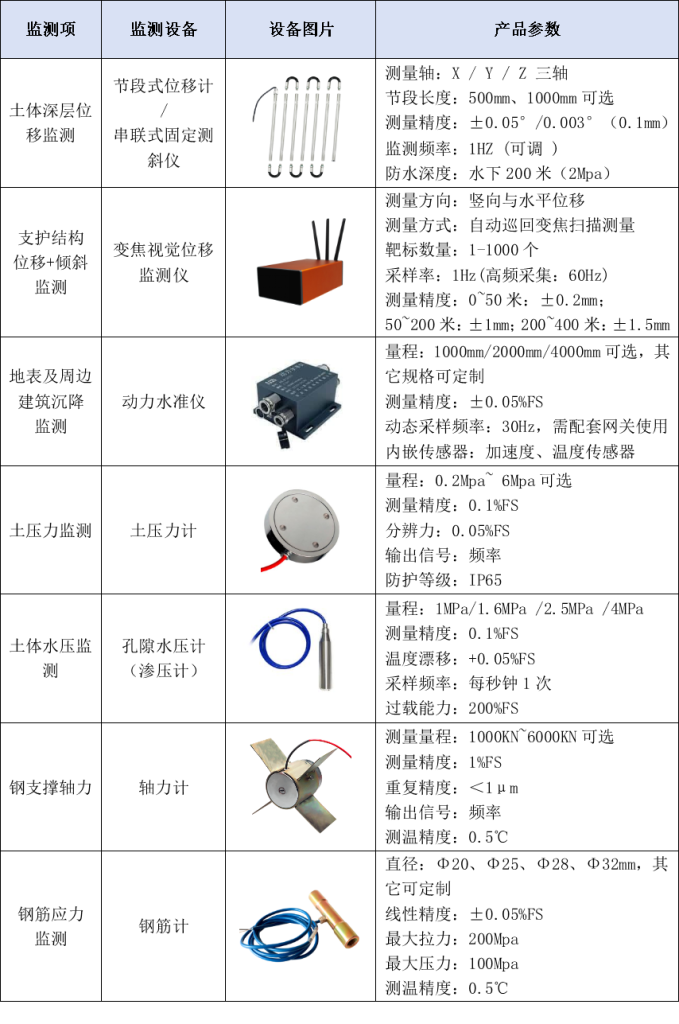 基坑施工安全监测项目的主要监测指标及所用的基坑监测传感器: