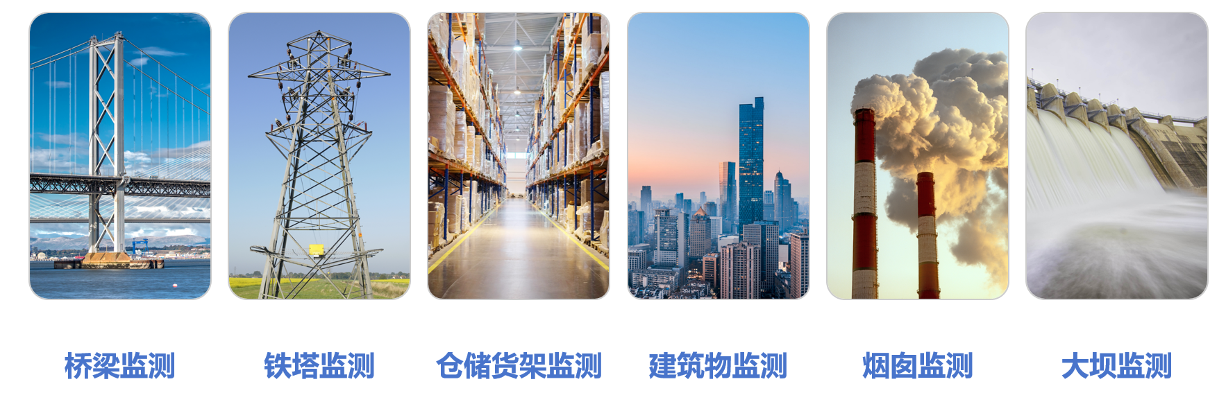 倾角传感器常用于桥梁、铁塔、高层监测、仓储货架、危房、烟囱大坝以及古树古建筑的倾斜角度自动化监测。
