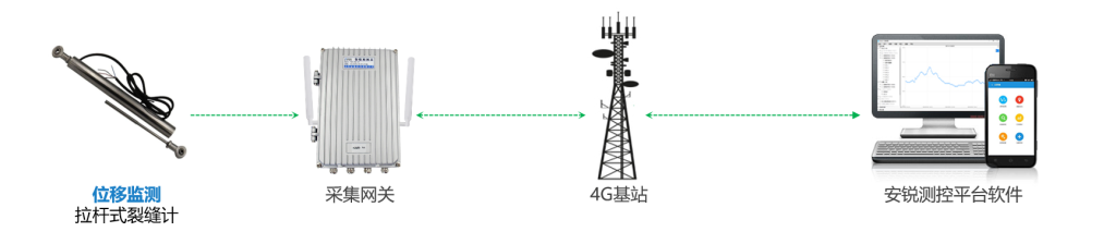 系统主要由拉杆式裂缝计、网关采集器和安锐云平台组成。