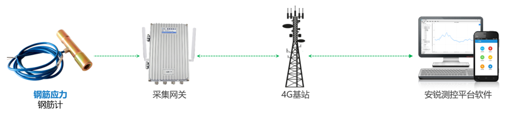 系统主要由振弦钢筋计、采集器和安锐云平台组成, 手机、电脑随时查看数据,异常自动报警。