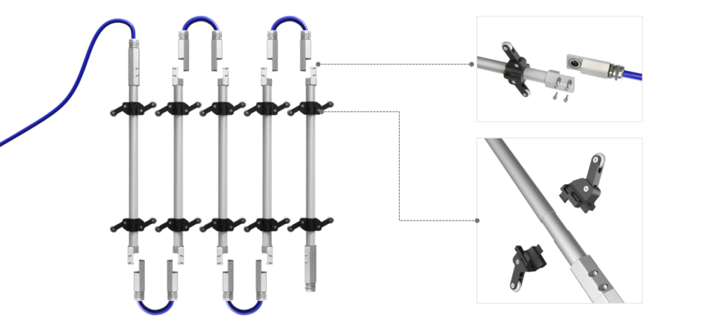 面对这些痛点,部分厂家尝试在传统阵列式基础上开发“可拆卸、可拼接”的改进版本,意图实现模块化复用。然而,受限于原有柔性连接件的设计(如钢丝网增强橡胶管+套管压接结构),这些产品在实际应用中暴露出一系列难题: